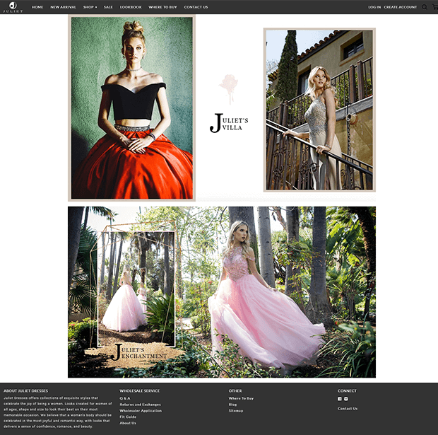 Juliet was originally selling their wholesale gowns exclusively through showroom walk-ins and print catalog, and was now seeking to launch their brand online to reach new clients.